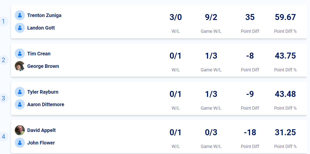 Thank you to all the members who played in Dinkville's Fall DUPR Flex League. I know it can get difficult coordinating matches with your opponents so I appreciate everyone getting their games in.