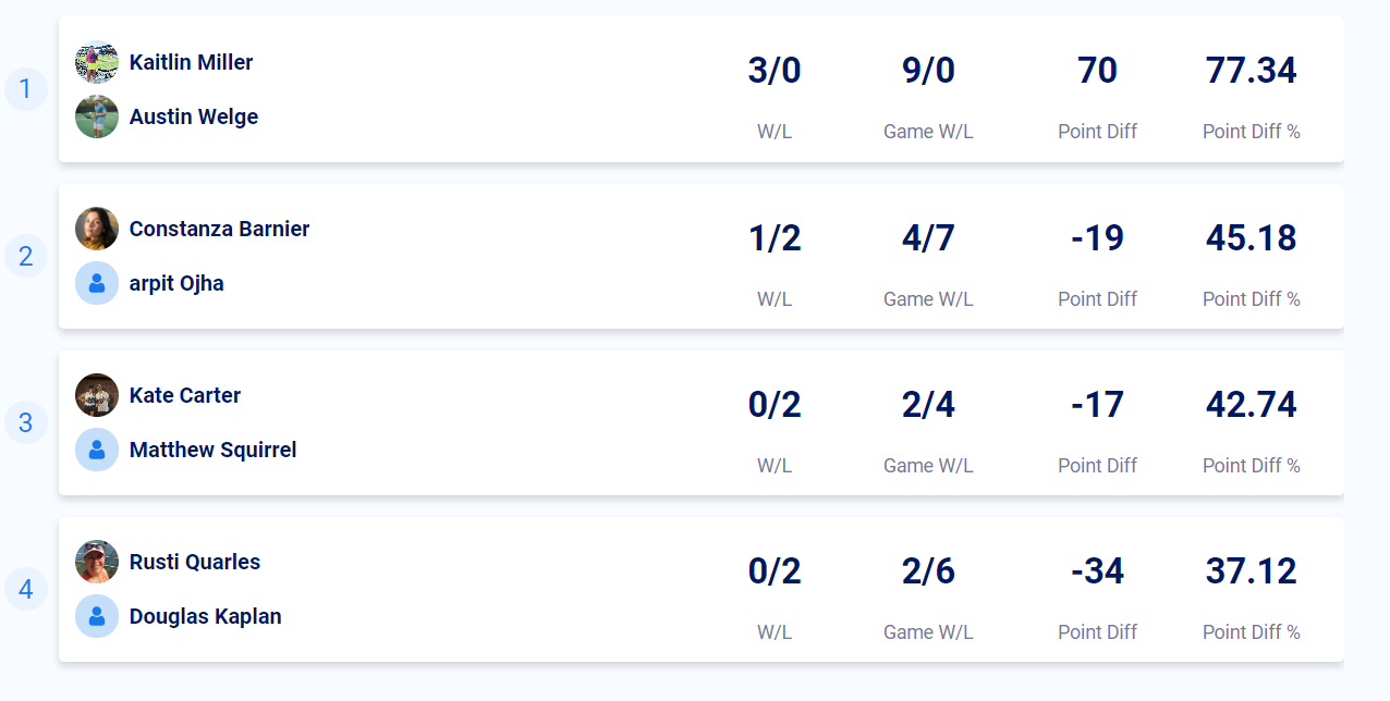 See below final standings from Nashville and Hendersonville-Gallatin for Dinkville Fall DUPR Flex Leagues.