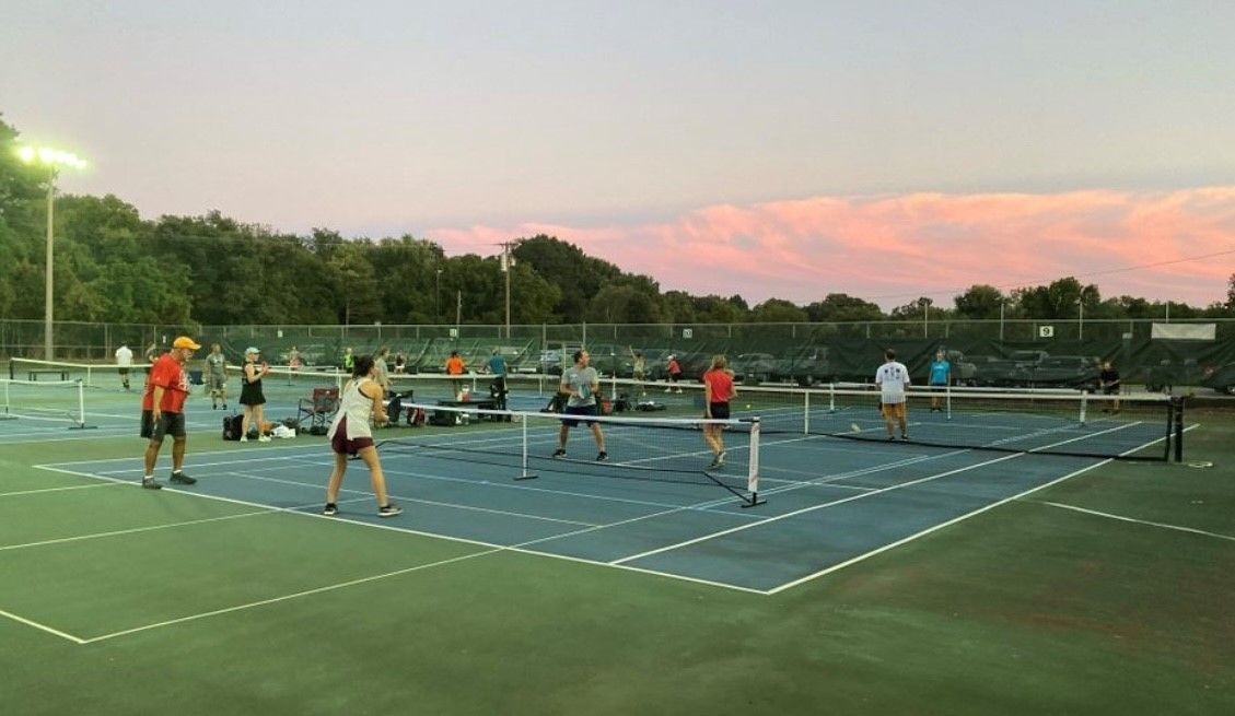 Another wonderful group of 16 members playing in a fun Ladder Event at Municipal Park in Gallatin, TN on Wednesday Night. This is a fun organized event where members move up/down a court if they win/lose and split partners. It forces members to play with different members and different skill levels to develop their skills. Look for the sign up link in the Community Discord!