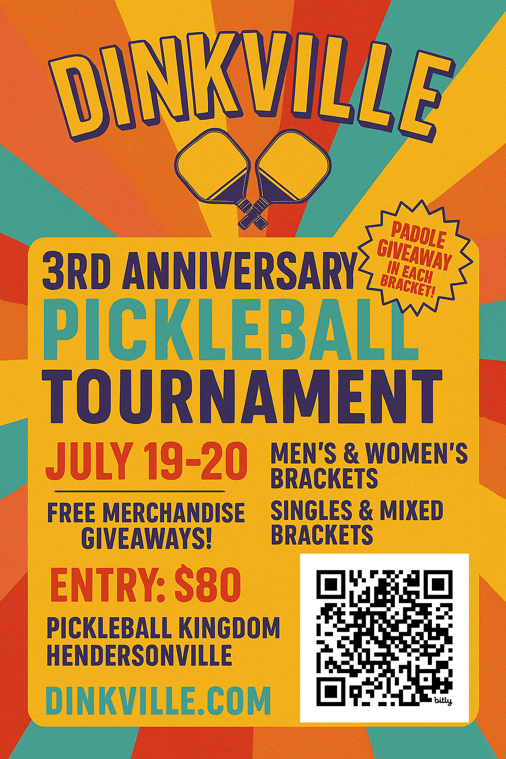 🎉 2. Dinkville’s 3rd Anniversary Tournament – July 19–20 at Pickleball Kingdom Hendersonville