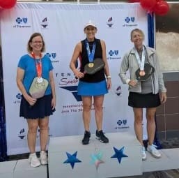 Women's Doubles 50-54 (D4) Silver Medalist Leah St. Germain and Sheri Young. Bronze Medalist Maria Gonzalez and Brenda Causey