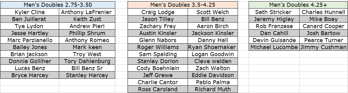 Men's Brackets Starting at 1pm'ish