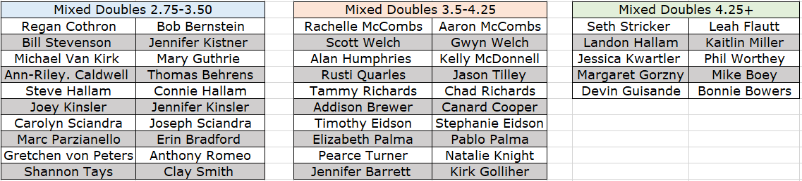 There will be Pickleball Courts setup on the lower tennis courts for any players/teams that want to Warm Up/Drill before their bracket!