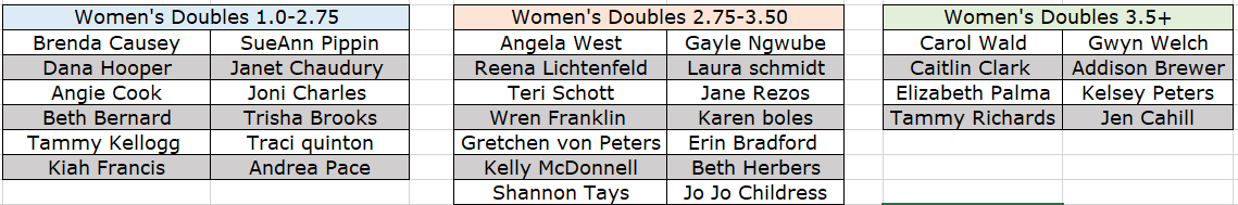 Women's Brackets Starting at 8am